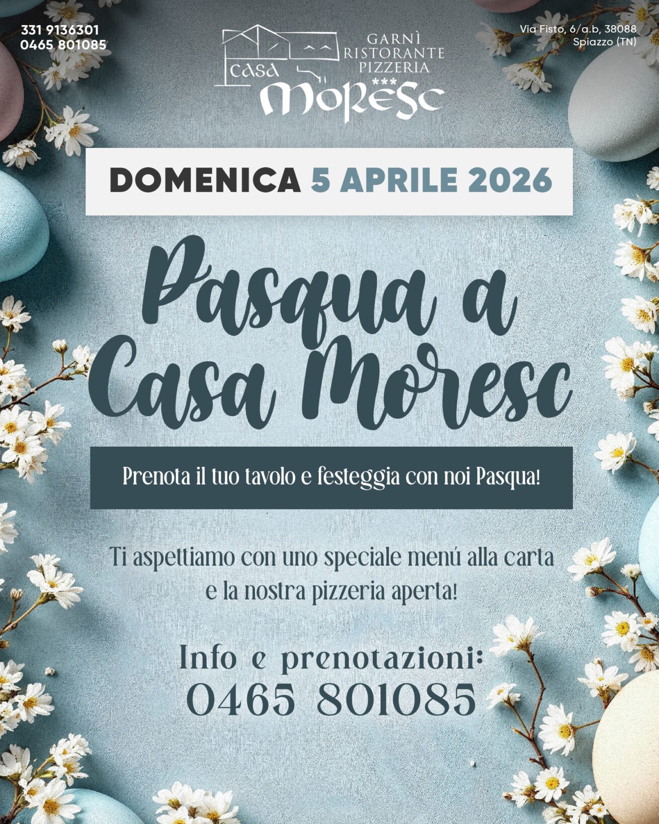 Vi aspettiamo domenica 5 aprile per un’occasione speciale da vivere insieme, con un menù alla carta arricchito da piatti unici firmati dal nostro chef 👨‍🍳 senza dimenticare la nostra pizzeria aperta!⁣⁣⁣
